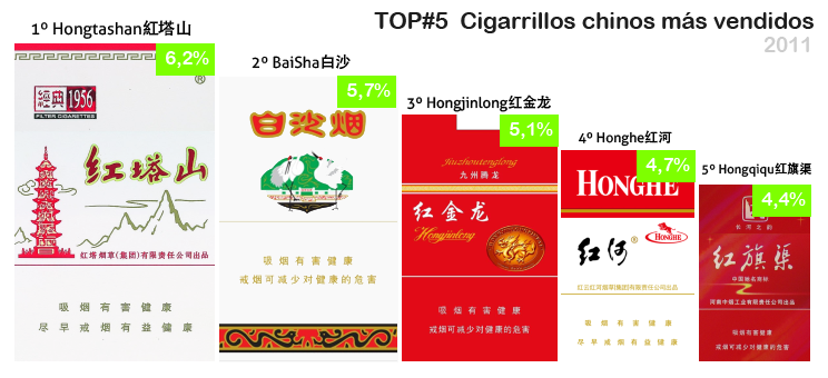 Como se menciona antes, en China hay muchísimas marcas de tabaco y hay que tener en cuenta que para cada marca pueden haber diferentes tipos y aspecto de la caja. Una cajetilla de una misma marca dependiendo la calidad pueden oscilar entre 5 a 60RMB, hasta algunas ediciones exclusivas pueden superar los 200, 500 o 1000 RMB. A continuación destaco las marcas de cigarrillos más populares clasificadas por empresas tabacaleras chinas: