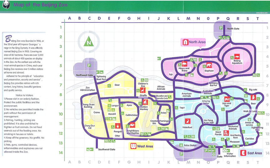 Voy a compartir con vosotros algunas fotografías que tomé de los animales, pero la mayoría de las cosas os las voy a contar hoy viva voce mediante un videomontaje que hice en su día. Para llegar al zoo tendréis que tomar la línea de metro 4 y bajaros en Dongwu yuan, 动物园地铁站, o sea, la parada del zoo, tal cual. El zoo queda en las inmediaciones del 2º anillo (èrhuánlù 二环路), que todavía podríamos considerar «el centro» de Beijing. En relación a mi residencia, está donde Cristo perdió la sandalia… O donde Noé aparcó el arca, por ejemplo.