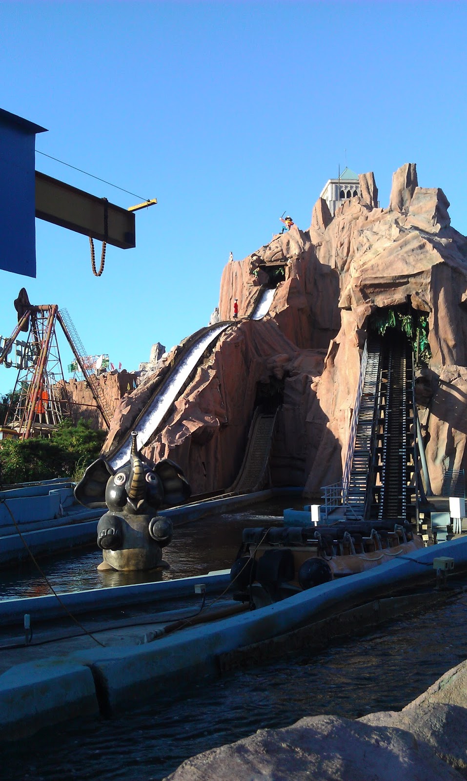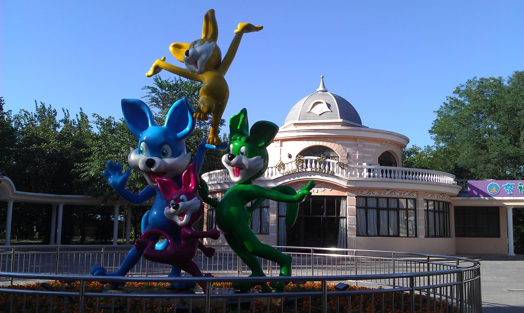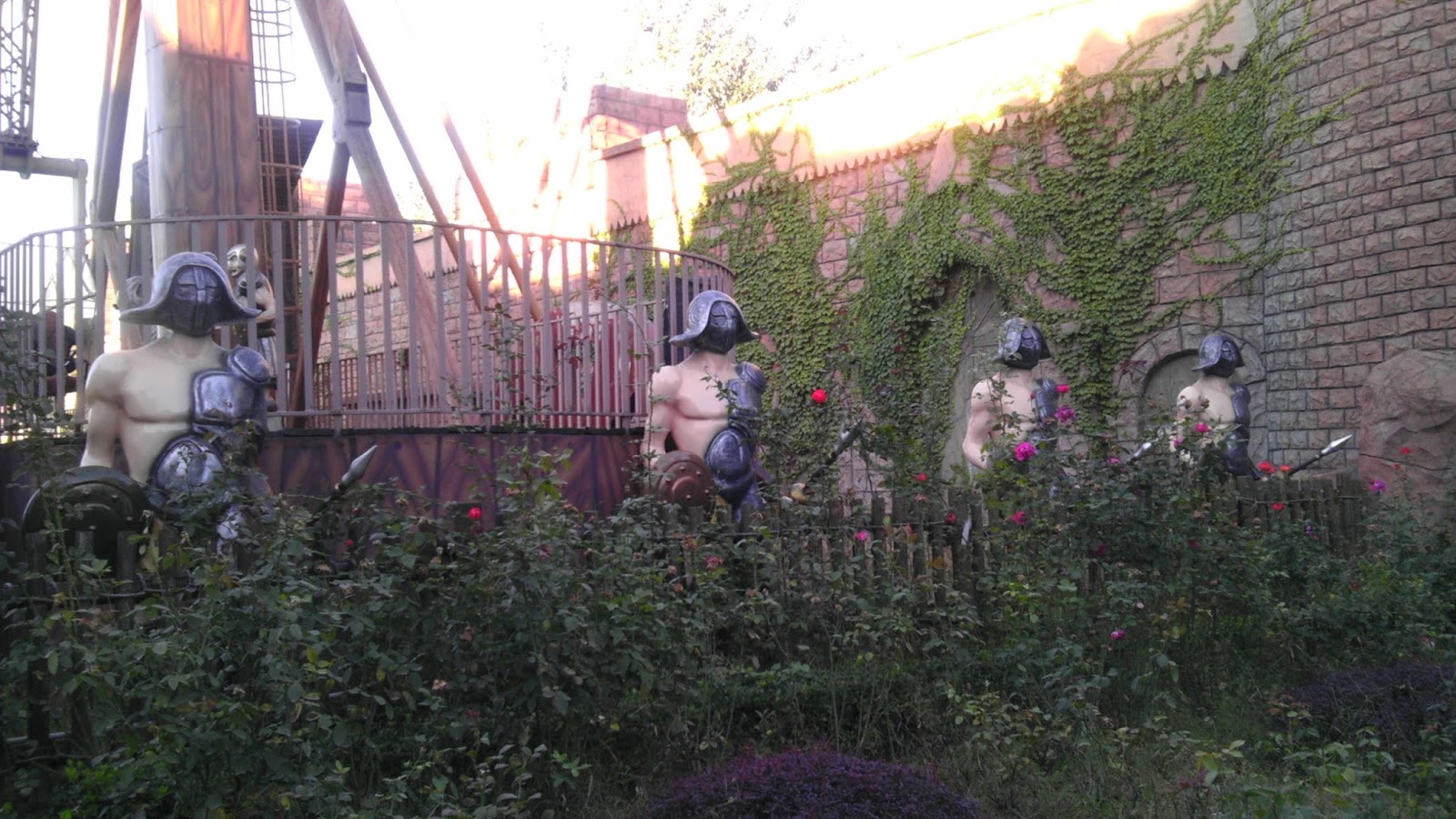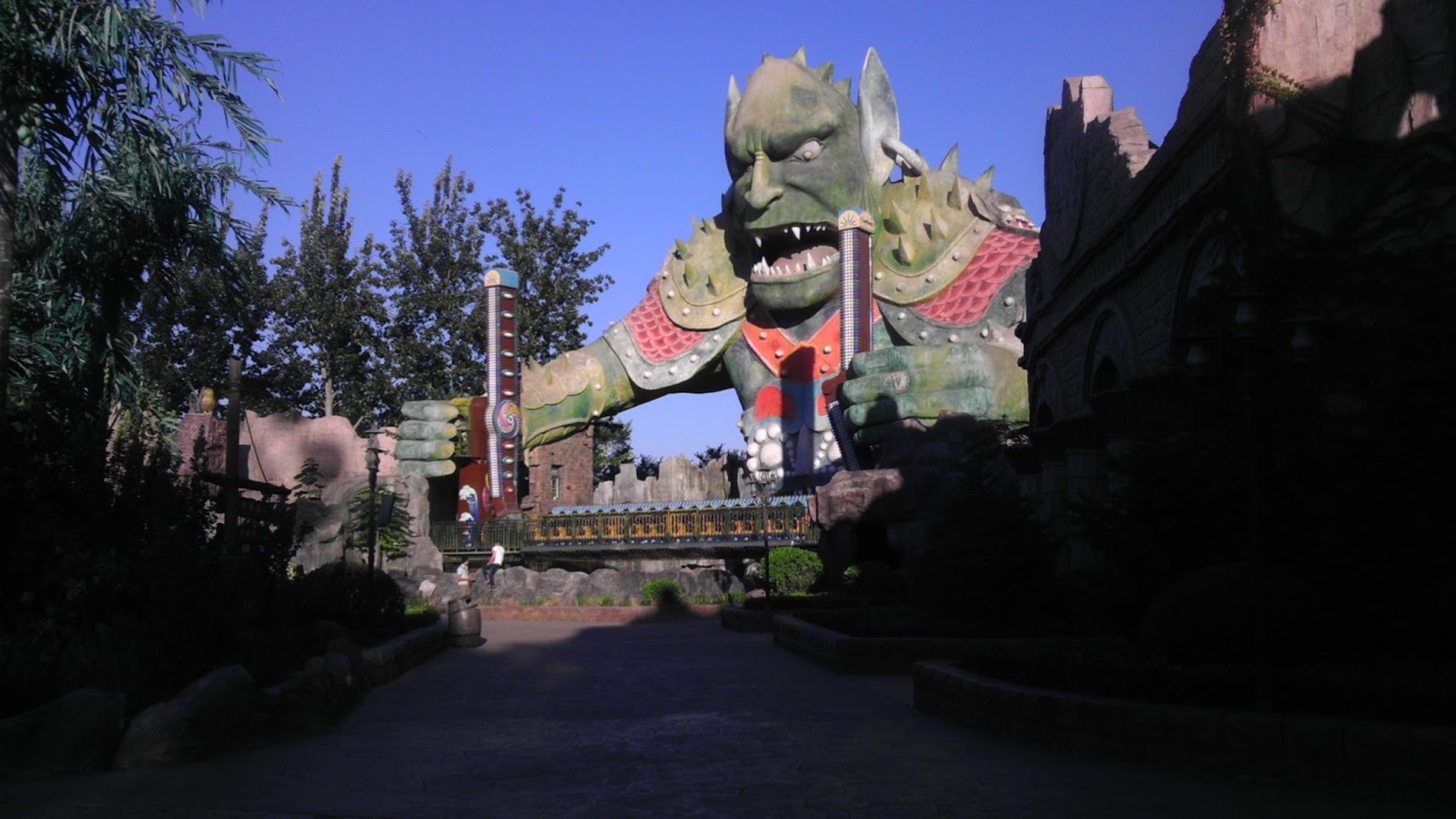 El parque fue inaugurado en el año 86, y en años posteriores fue objeto de múltiples críticas y litigios debido al sospechoso parecido de algunos de sus elementos con marcas de Disney y terceros asociados. El castillo del parque (la foto de más arriba) desde luego recuerda hasta cierto punto al castillo de la Cenicienta de Disney, estructura que también se ubica en el dentro de susodicho parque; algunas fuentes afirman que también había personajes en extremo parecidos a Mickey Mouse, o Bugs Bunny, por mencionar algunos… En nuestra visita nosotros no llegamos a ver nada que fuese mínimamente reconocible. Solo cosas bizarras, puras y duras.