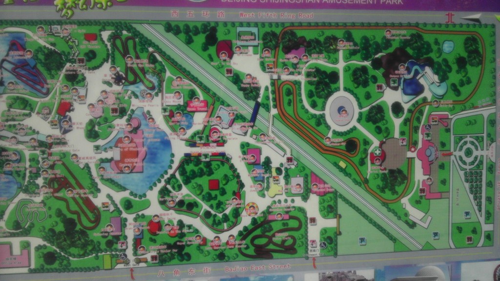 Para ir al parque Bajiao tendremos que desplazarnos hasta el área suroeste de Beijing, y recorrer la línea 1 hasta la parada del mismo nombre, Bajiao Amusement Park Station (八角游乐园地铁站). La entrada al recinto costaba 10 yuanes por aquel entonces. El parque consta de unas 9 atracciones tipo montaña rusa, tiendas y puestos para comprar guarrerías para comer y un cine 4D, lo que era uno de los principales atractivos del parque (eso si te mola que te tiren agua a la cara mientras ves una película, claro). Las atracciones eran las siguientes: