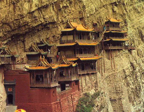 El autobús también nos llevó al tan sonado Monasterio Colgante, al pie del monte Hengshan. Fue construido en el año… (redobles de tambor)…¡491!, en el periodo de las Dinastías del Norte y del Sur. ¡Tiene 1522 años, y sigue sin caerse! Claro que ha sido merecedor de la dedicación y cuidados de varias dinastías desde su construcción pero, aun así, esta cifra no deja de ser impresionante.