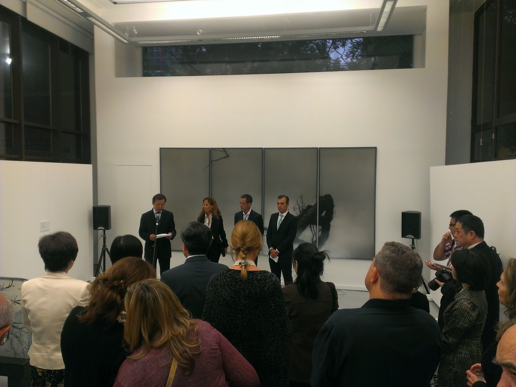 El Sr. Embajador ZHU Bangzao asistió también al acto, que dirigió el Sr. LUO Jun, director del Centro. Apropiadas palabras de la comisaria de la exposición M. Gras Balager, y del representante del gobierno balear. El autor, en lacónica pero suficiente intervención, agradeció la colaboración de patrocinadores y el interés de los asistentes. Habituales del centro de Madrid, estudiantes del arte abstracto de Picasso, miembros de la Universidad Carlos III y algún outsider de Pozuelo eran lo más nutrido de la asistencia.