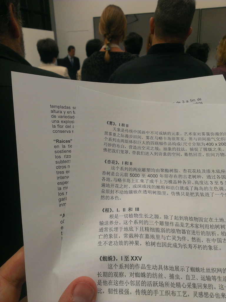 Bastante expectación en el Centro Cultural de China en Madrid ante la inauguración de la exposición 树·影 «El Árbol y la Sombra» del autor sinomallorquín 里卡德·将. Excelente atmósfera y abundante asistencia al evento, que patrocinan el propio Centro, la Casa Asia y el Instituto de Estudios Baleares.