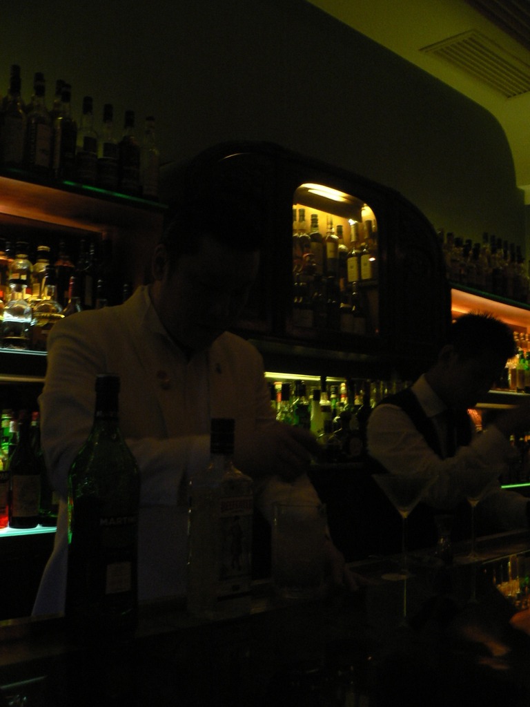 El primero, pequeño, estrecho y compuesto básicamente por una larga barra donde acodarse mientras deglutes cacahuetes, era el típico lugar con el que sorprender a la futurible y más que probable compañera de cama. Ahora se corre el riesgo de tener que apoyar el preciado néctar espirituoso en la cabeza de alguien de tanto como se llena. Porque las bebidas son de una calidad excelente, y lo que antes era una especie de secreto ahora es una apuesta segura que abarrota el local de humo y de voces. A partir de 70 yuanes el combinado y con una carta del grosor de las dos partes de El Sueño del Pabellón Rojo, los camareros del Constellation, de traje y pajarita, remueven con arte las cocteleras y escancian maravillosos clásicos a base de ginebra o excelentes old fashioned.