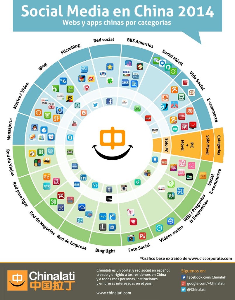 Debido a la censura del Internet en China, muchas de las webs internacionales más importantes están bloqueadas, como por ejemplo Facebook, Twitter, Youtube, Blogspot, WordPress… Muchos de esos servicios onlines prohibidos han sido versionados adaptándose al público chino. Para entender un poco el social media del gigante asiático hay que asimilar que este ha desarrollado sus propios servicios a diferencia del resto del mundo. A pesar de ser espacios aparentemente bastante desconocidos, debido a la gran demografía del país, muchos de estos disponen de centenares de millones de usuarios y algunas páginas como el portal de e-commerce Aliexpress de Alibaba o como por ejemplo la red Wechat, ya están disponibles globalmente y en varios idiomas, por lo que no viene nada mal ir familiarizándose con estos servicios, y más si se tiene en mente el promocionar en un futuro algún producto, servicio o empresa en China.