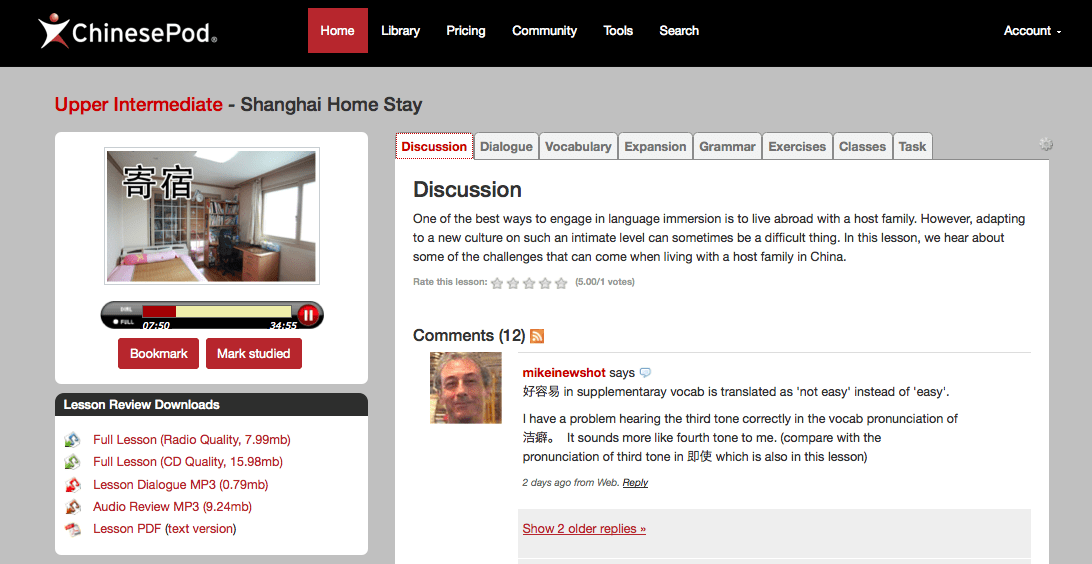 Yo ya sabía que ChinesePod era bueno, pero nunca me había puesto a disfrutarlo desde el punto de vista del que paga. La verdad es que ahora me parece que es un servicio que vale los 20 € completamente.