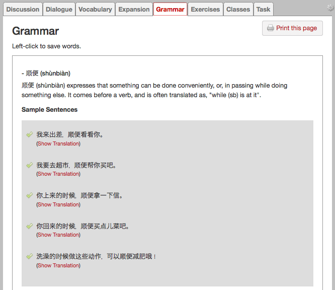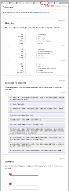 Como comentaba antes, creo que ChinesePod es de gran utilidad si estás estudiando chino de forma autónoma. Es mil veces más divertido que comprarse un libro y sentarse a estudiar, con lo cual hay más posibilidades de que te mantengas motivado e interesado por estudiar. Las explicaciones de los diálogos sirven como pequeñas clases particulares y puedes utilizar las otras secciones si no te ha quedado claro algún punto de la gramática o si quieres repasar el vocabulario haciendo ejercicios.