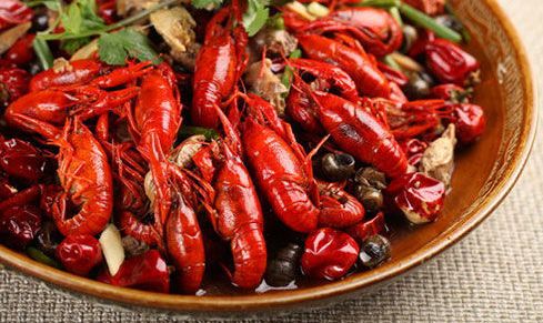 – Cangrejos de río (小龙虾 xiao longxia): en chino se llaman literalmente «langostas pequeñas». Se empiezan a ver a finales de abril y el lugar favorito para comerlos son los restaurantes callejeros. Al lado de mi apartamento hay un pequeño restaurante con mesas en la calle y desde hace varias semanas siempre está lleno de gente comiendo cangrejos de río. La verdad es que huelen a gloria bendita, pero cuando los probé me decepcionaron bastante: están muy picantes (tanto que no sabes qué sabor tiene el cangrejo en sí; sospecho que no muy bueno) y la cantidad de carne que te comes en cada uno es mínima: más de la mitad del cangrejo es cabeza. Mucho rechupeteo y mucho guarreo de manos para al final nada. Normalmente se comen con guantes de plástico para evitar ponerse demasiado perdido, y en la mesa se pone una palangana para tirar todas las cáscaras.