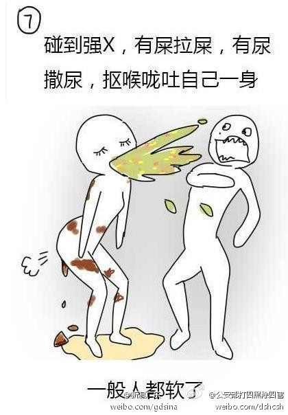 7. Si se encuentra en una situación de X*, debe defecar u orinar, y si puede, métase los dedos en la garganta para vomitar. (* la palabra violación está censurada por lo que ponen X)