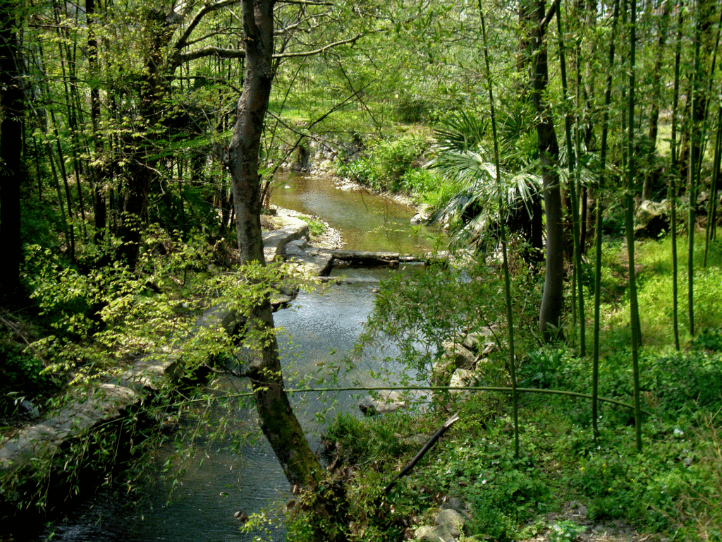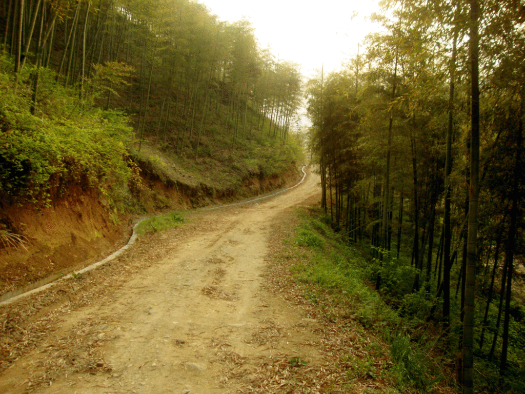 Cuando nos internamos en la colina detrás del hostel (o resort) nos dimos cuenta que era algo empinada y se me ocurrió sacar el mapa que me habían dado en recepción. Aquello no era un simple bosque de bambú, sino que era una pequeña montaña llamada Tian Quan Shan, que tenía casi la misma altura que Mogan Shan, pero sin todo el glamour de un resort para extranjeros durante el S XIX.