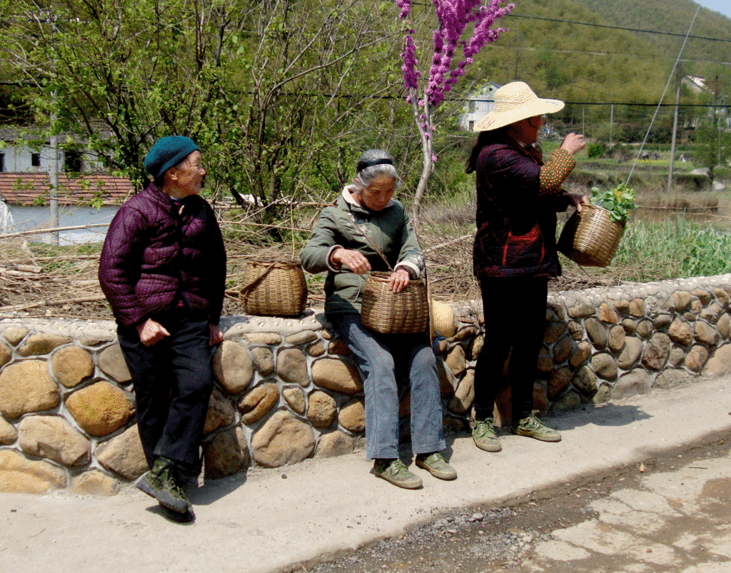Comenzamos a caminar hacia el sudeste, como indicaba Google maps. Seguimos caminos de asfalto y construcciones, preguntamos a los trabajadores que encontrábamos, a los campesinos que llevaban raíces de bambú, a los que estaban talando árboles. Encontramos pequeños bosques y nos sumergimos en ellos para tomar atajos… y un rato después llegamos a Da Zaowucun. Sólo un rato más tarde y ya con algo de hambre, llegamos a Yaowucun o Waitaowu (en realidad eso lo sé ahora, cuando estábamos ahí estas pequeñas aglomeraciones de casas, carritos con golosinas, escuelas tradicionales y muchas banderas de China eran solo… ¡Mirá que lindo pueblito!).