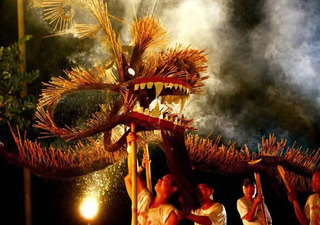 En varios lugares de China para celebrar la llegada del festival se realizan diferentes danzas tradicionales de leones o dragones. Una de las más importantes ocurre en Hong Kong, donde durante los tres días previos al festival hay la costumbre de realizar la Danza del Dragón de Fuego Tai Hang 大坑舞火龍. Esta se basa en crear un dragón gigante que mide alrededor de 67 metros de largo equipado con miles de varillas de incienso encendidas y este desfilará durante la noche por las calles del distrito de Tai Hang, en Causeway Bay, acompañado con el fuerte estruendo generado por el sonidos de los tambores y címbalos. Este emocionante evento se origina por una leyenda que dice que en 1880, los habitantes de Hakka realizaron una danza del dragón de fuego durante el Festival de Mediados de Otoño para erradicar una plaga y parece que el método tuvo éxito y convirtiéndose en una tradición anual.