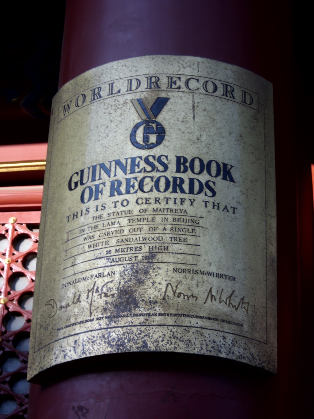 Foto: Estatua de 26 metros de altura, y su correspondiente certificación como récord.