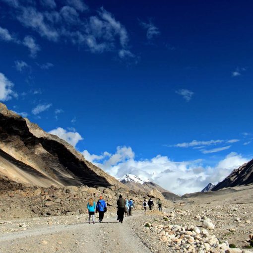 El plan parecía simple: llegar a la tienda de campaña desde Shigatse en unas diez horas y un colectivo nos llevaría hasta el campamento base de la gigante de 8850 mts de altura. Simple en los papeles, pesadillezco en la realidad. El trayecto desértico estaba falto de baños naturales para damas y el calor nos abotonaba al asiento. Pero nada fue tan frustrante como que después de transitar más doce horas de camino de ripio en una van que emulaba a la perfección la máquina de Samba de los parques de diversiones, nos llegara la poco esperada noticia: para Namgayl, nuestro guía, era demasiado tarde para tomar un transporte y ninguno de nosotros estaba en condiciones para caminar a destino.