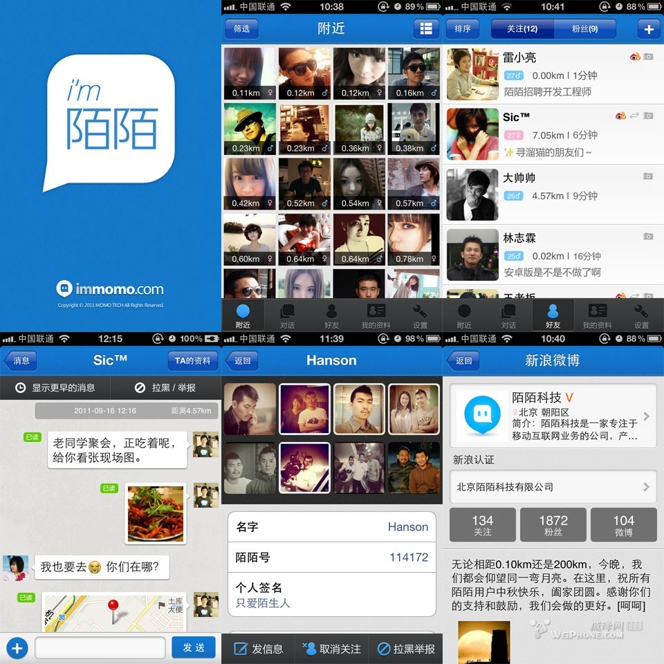 MoMo se trata de un servicio de mensajería instantánea bastante convencional, con amigos que puedes agregar y charlar con sus respectivos perfiles. Puedes agregar también tus listas negras para los más molestos. Momo se integra bien con Sina Weibo, por lo que los usuarios que han optado por vincular el servicio, puede navegar por su completa línea de tiempo de Weibo desde dentro de la aplicación.