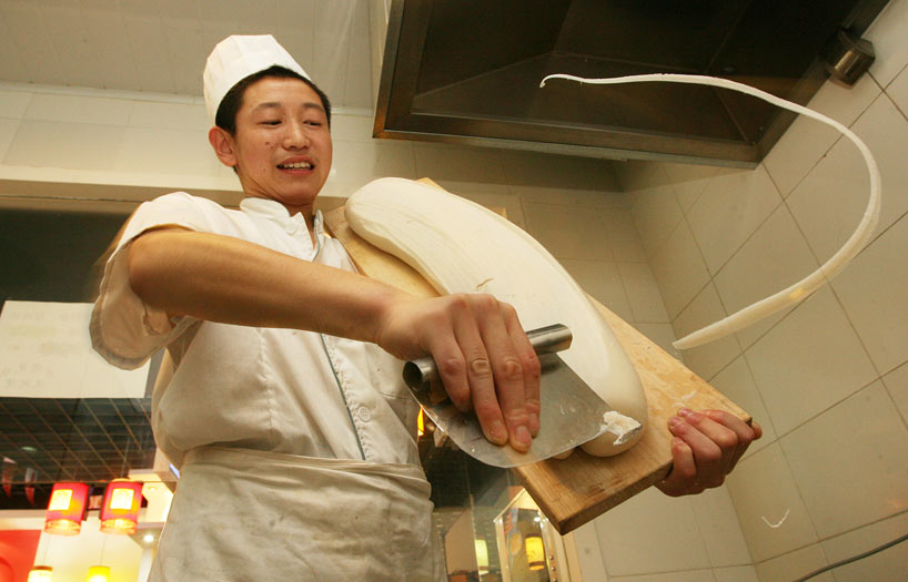 Además, la elaboración y la presentación de los platos suponen también una riqueza artística y cultural. Para preparar los tallarines originales de Shanxi, el maestro necesita cortar una masa que pesa alrededor de un kilo y medio, puesta en una tabla de madera apoyada en un hombro. El cocinero suele trabajar con cuchillos de 17 centímetros de longitud, uno en cada mano. Un tallarín cortado tan fino como la hoja de un árbol cae en la cazuela mientras otro le sigue al agua hirviendo formando un mar incesante de fideos. La forma de los tallarines cortados se asemeja a la de los peces que se revuelven en un estanque y también al movimiento de las hojas que se caen de los árboles mecidos por el viento. La elaboración de estos tallarines asemeja un espectáculo de kung-fu. Una buena presentación de este plato contendrá una preciosa imagen con montañas y agua, un dragón y un fénix. Una montaña hecha de frutas y cubierta por lotos esculpidos con rábanos, y una rodaja de salchicha de color rosa en el fondo del plato, forman un dibujo de paisaje pintoresco que fascina a cualquier persona.