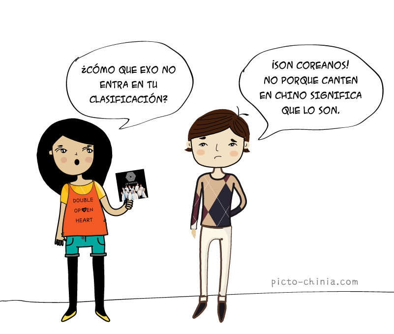 Yo soy terrible para aprender nombres, canciones, ritmos, etc. de grupos o solistas actuales. Mi música favorita es aquella que no tiene letra, por ello cada que me piden que les recomiende un grupo en chino mi única respuesta es: ¿…EXO? (Si, con expresión interrogativa).