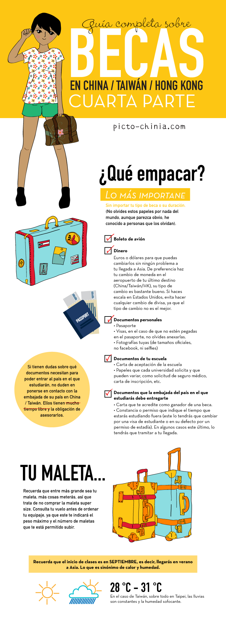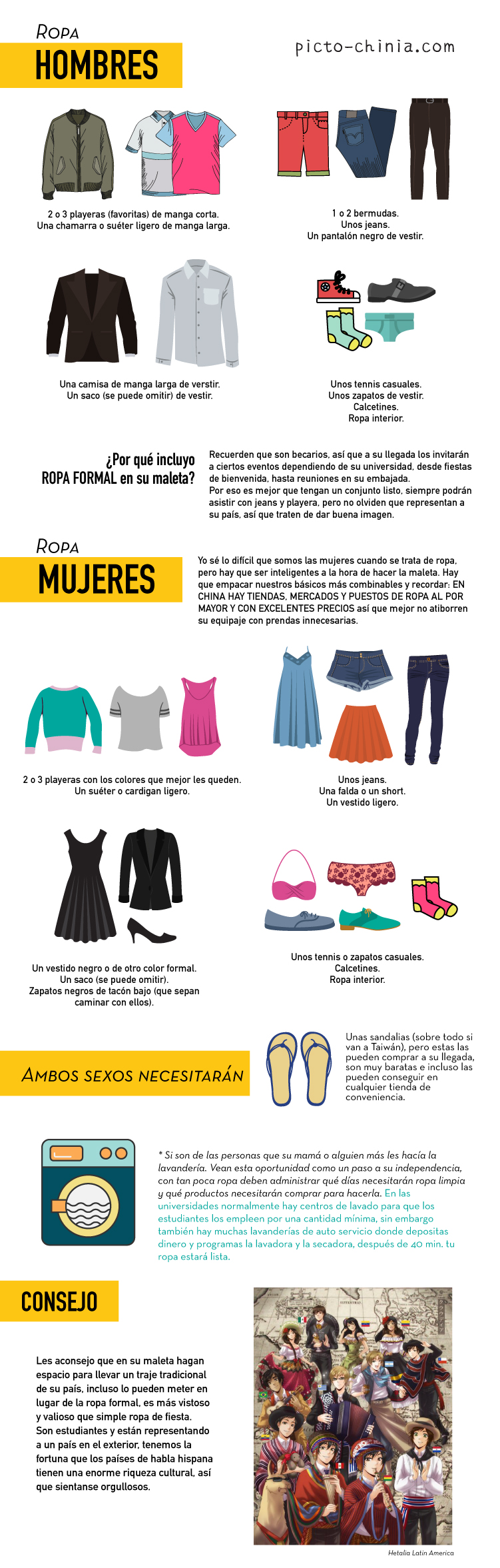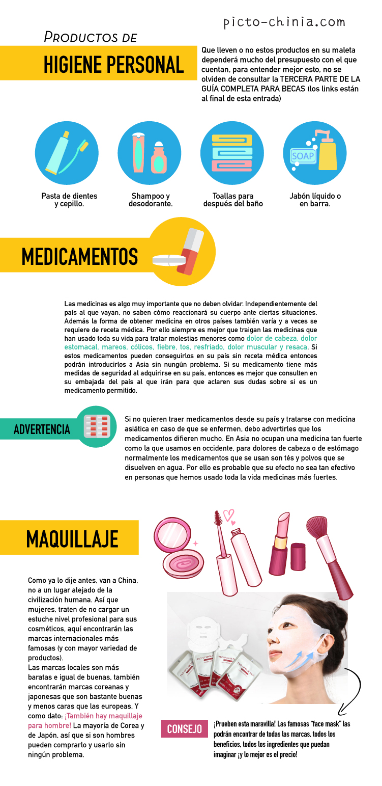 Espero que esta guía los ayude a la hora de empacar en su viaje a oriente, serán estudiantes por un tiempo así que no necesitan desbordar glamour en los salones de clase. Como consejo de souvenir, lleven consigo 2 o 3 cosas típicas de su país para regalar a sus amigos o a las personas que los ayuden en el país en donde estén, es algo muy valioso que agradecerán mucho.