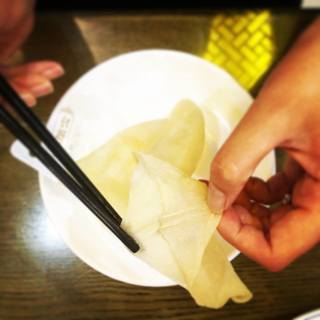 Nuestro té llega, y con él, un pequeño tazón con azúcar de roca (bīngtáng 冰糖). Helen toma el suyo dulce, yo de forma natural queriendo descubrir los aromas ocultos de las flores. Mientras esperamos la comida, me cuenta sobre los chûn bǐng que comió mientras crecía y sobre su ciudad natal. Es uno de sus platos favoritos. «Lo comíamos solo una vez al año […] para marcar la llegada de la primavera y celebrar el evento». La familia se reunía en la casa de sus abuelos. «En aquel entonces, sabes, no teníamos muchos recursos, así que en el Festival de Primavera preparábamos una gran comida, y después, ésta [los chûn bǐng] era la segunda comida más grande en el nuevo año».