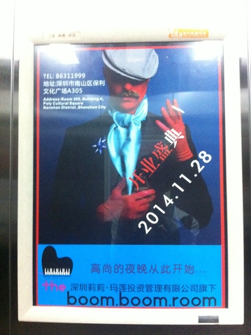 No me he atrevido a ir a The boom boom room, y no sé si algún día estaré lo suficiente desesperado para hacerlo. Pero tiene pinta de club muy turbio. Látex y chulapos madrileños. Un rollo sado-cañí que no me atrae en absoluto. Pero en China todo tiene su público, oye.