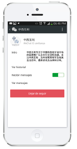5) En WeChat tienes, por un lado, tus conversaciones con contactos, igual que en Whatsapp, pero hay uno de los contatos que aparece como “Cuentas de suscripción”. Cada vez que una cuenta a la que sigues hace una publicación, te avisa como si fuera un mensaje de un contacto, por lo que terminas prestando más atención. Además, aparece separado, por lo que no recibes información de las empresas en el newsfeed si no es porque alguno de tus contactos lo ha compartido, en cuyo caso tiene interés porque lo recomienda un amigo, y no solo porque una empresa quiere hacer difusión. Esto permite que la gente se sienta en control y no se contamine la app de mensajería y de relación con tus contactos.