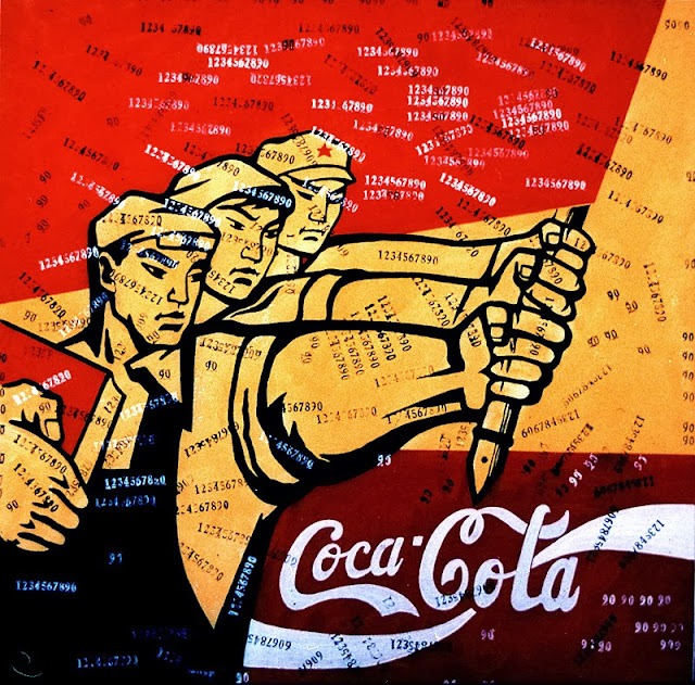 11.- Wang Guangyi (王广义) es la imagen más visible del movimiento llamado ‘pop político’. Su forma de entender la crítica al modelo social establecido en China en los últimos cuarenta años, es representar logos de marcas occidentales como Coca-Cola sobre carteles que imitan la propaganda de la Revolución Cultural en la que aparecen trabajadores, campesinos y soldados chinos en una actitud heroica y monumental y sobre todo ello imprimir números que recuerdan a los de las tarjetas de crédito. Esta contradicción de imagenes simbólicas que van desde la época más dura del maoismo a las imagenes propias de una sociedad capitalista se convierte en una crítica a los valores de la nueva China.