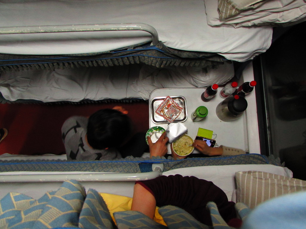 Para no morir de hambre durante todas esas horas y no dejarse el dinero en los caros y no muy apetitosos menús que venden en el tren, lo mejor es recurrir a las galletas de arroz y a los famosísimos instant noodles. Por 5 yuan puedes encontrarlos en cualquier parte y con tan solo añadirles agua hirviendo están listos para comer.