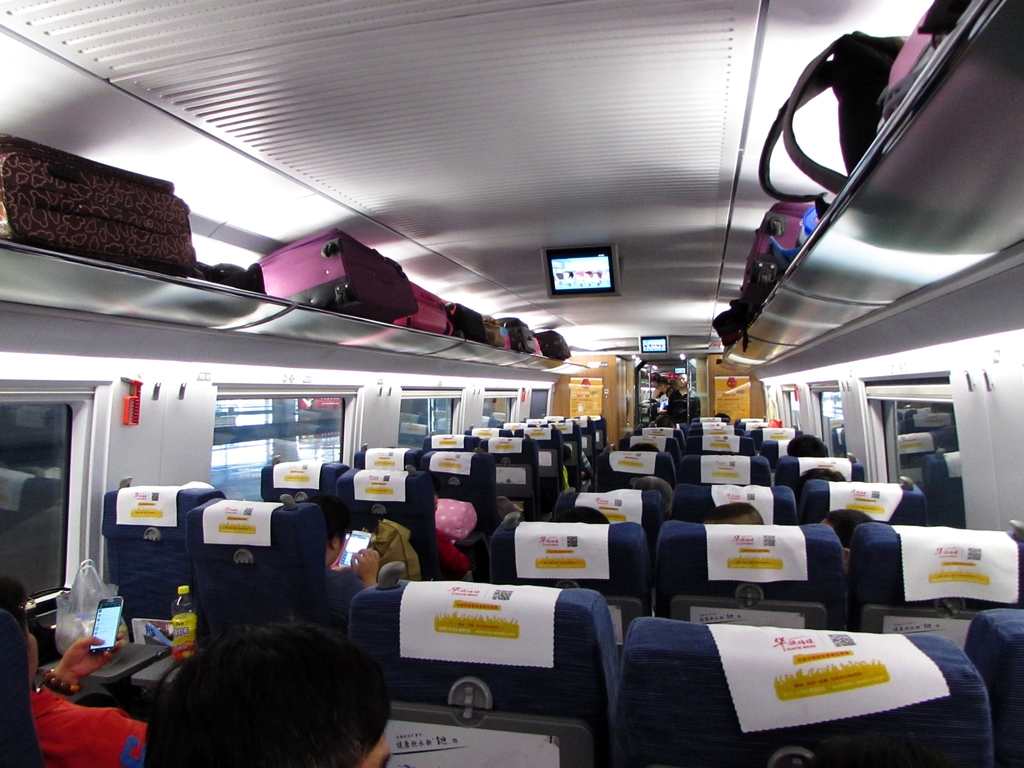 El problema es que si no te das prisa en comprar un billete para este tipo de trenes con cama, te quedas sin sitio y vas a tener que viajar durante horas o días en trenes menos confortables. Estos trenes menos cómodos se dividen en dos clases: asiento blando y asiento duro. El asiento blando es más caro que el duro, pero creedme, si el viaje es largo el precio lo vale. Los asientos duros en largas distancias vienen a ser… ¿cómo decirlo? Una tortura. No se trata solo de no tener un cojín en el lugar donde se supone que uno va a apoyar el trasero, sino que el respaldo parece estar diseñado para dejar tu espalda como la del Jorobado de Notre Dame. Además, el espacio entre tu asiento y el del pasajero de enfrente es más bien escaso. A todas estas opciones hay que sumar una quinta y emocionante forma de viajar en tren. Si los asientos duros nos parecen un instrumento de tortura a la altura de los que utilizaba la Inquisición por nuestras tierras, ¿qué pensáis de viajar cerca de 20 horas de pie? Sí, sí, como lo oís, de pie, sin asiento, como cuando vais a trabajar y no quedan banquetas libres en el metro, pero durante 20 horas. Esto es lo que os puede pasar en China si compráis el billete de tren más barato o si ya no quedan plazas libres para todos los demás. Para ellos lo importante es que el tren vaya bien aprovechado, sin huecos libres, así que si hay que vender billetes para ir de pie, se va de pie y punto. Lo mejor de todo es que los que viajan en asiento duro terminan tan hartos de ir sentados, que cada cierto tiempo se intercambian con los que van de pie y, de esta forma, el viaje se hace mucho más llevadero para ambos. Mis amigos y yo tuvimos la suerte de encontrar billetes de cama dura para casi todos nuestros viajes. Casi todos, porque en cierta ocasión estuvimos viajando 18 horas de noche en un asiento duro (algo que espero no tener que repetir). Una vez explicado este panorama no os sorprenderá que cada vez que nos cruzábamos con uno de esos trenes modernos de alta velocidad, con asientos amplios (¡e incluso reclinables!) y pasillos limpios, soltáramos un ¡guaaaau! y pusiéramos los ojos tan redondos como cuencos de arroz.