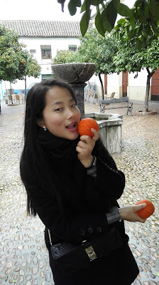 Siguiendo con el cuadro de choques culturales y situaciones novedosas, decir que mi pareja lo ha flipado con la cantidad de naranjos que adornan las calles de Córdoba, planteando la típica pregunta que cada visitante de la capital califal se hace: “¿Y esas naranjas se pueden comer?”. Naturalmente no (tienen un sabor muy amargo), aunque eso no convenció a mi novia para que se olvidase de catarlas. Su posterior gesto de desagrado confirmó que no lo volvería a hacer