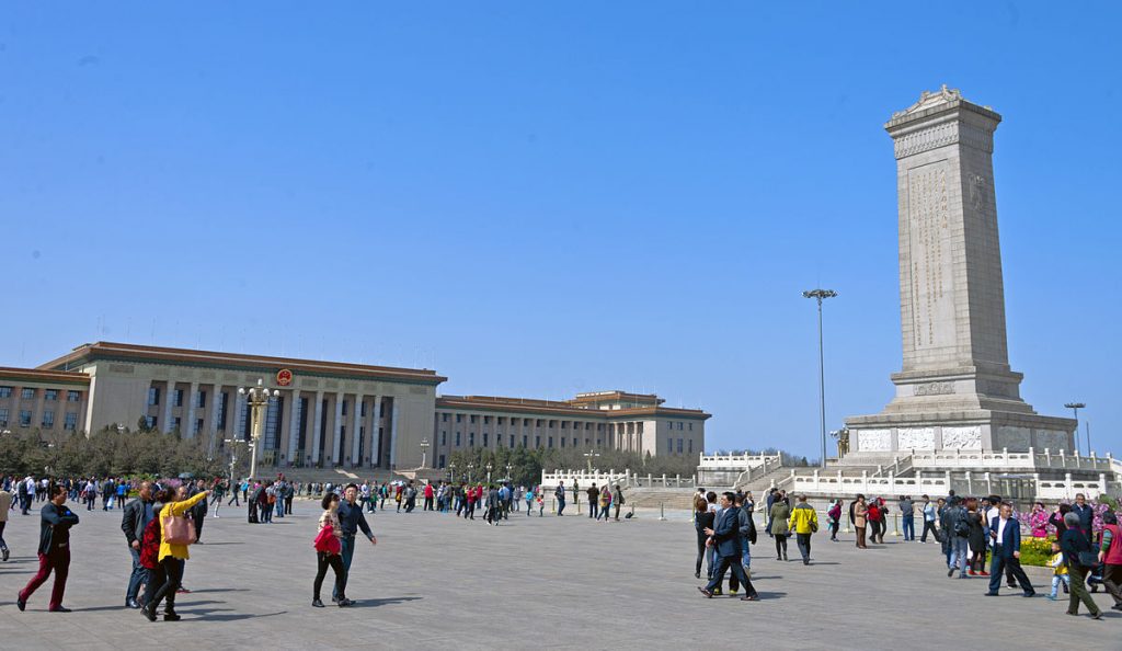 La plaza de Tian´anmen está situada en el centro de Beijing, el sur de la Ciudad Prohibida. Tiene una superficie de 440.000 metros cuadrados, es la plaza pública mayor del mundo. Ha sido escenario de importantes sucesos en la historia de China, aquí en el año 1949 Mao Zedong proclamó la República Popular China. Ahora es un lugar relajante donde la gente común puede pasear, empinar cometas y ver lo florida y hermosa que se pone en las fiestas chinas.