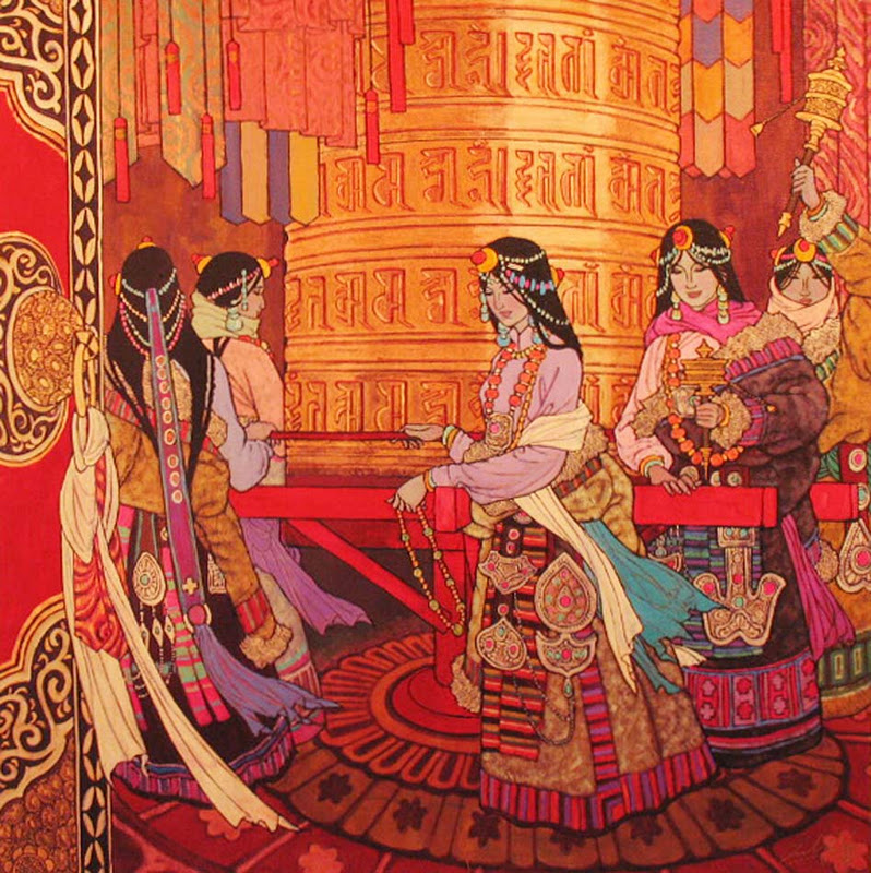 Las ruedas de oración aparecen con frecuencia en las pinturas chinas. Así que he abierto esta entrada donde iré colocando los cuadros de mis admirados pintores donde se represente este objeto.