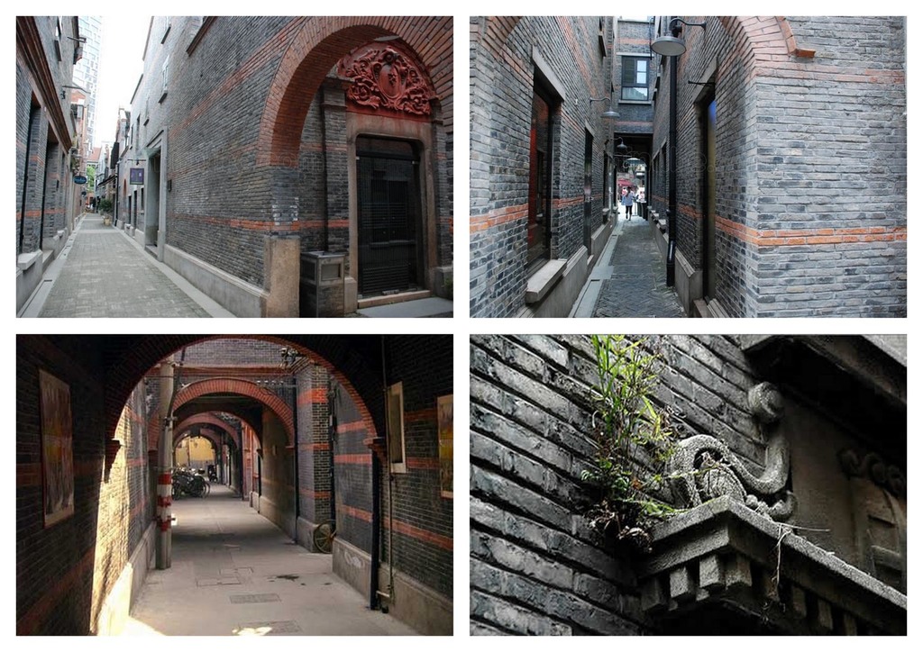 Estos edificios reflejan una mezcla de estilos arquitectónicos chinos y occidentales y también una forma de vivir. Es una mezcla de las casas británicas con la casa con patio tradicional china. Detrás de la puerta de un Shikumen encontramos un patio, y más adentro una sala de estar o salón, luego está el patio trasero, la cocina y la puerta de atrás. A los lados del patio y el salón se abren las habitaciones del ala derecha y la izquierda. El diseño de la segunda planta es similar a la de abajo, pero por encima de la cocina es la buhardilla, cubierta con un techo plano. El patio está protegido por un alto muro de ladrillos. Cada residencia está conectada y dispuesta en callejones rectos.