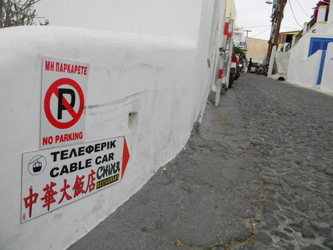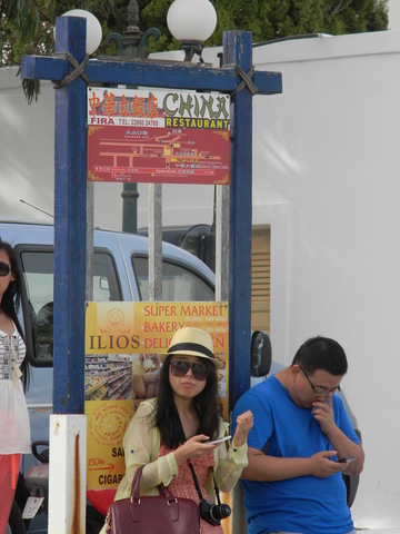 Algo que nos llamó la atención en Grecia es que era bastante amigable al turista chino: algunos restaurantes con menús en chino estaban llenos, joyerías con carteles señalando que aceptaban como forma de pago UnionPay, libros e incluso camisetas típicas de «Yo estuve en Santorini» estaban disponibles en idioma chino.