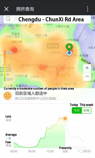 Esta función te permite ver la cantidad de gente en una área determinada en tiempo real, en una hora durante el día, todo el día o en la última semana. En las imágenes de debajo, en tres zonas distintas de Chengdu, Shanghai y Beijing, podemos ver que La Plaza de Tian’anmen. uno de los lugares más famosos de Pekín, es una zona especialmente concurrida.