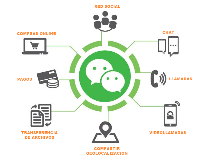Con más de 800 millones de usuarios activos mensuales, WeChat (llamada Weixin en China) es la aplicación más popular en China. Con más de 1200 millones de usuarios activos mensuales, WeChat actualmente tiene más de la mitad de la población china que usa la plataforma. Es más popular que Instagram y Messenger juntos. Desde los juegos hasta la creación de tiendas online, pasando por la lectura de noticias y libros, la visualización de vídeos, el envío de dinero y el pago de facturas, la escucha de música, la reserva de taxis y mucho más… WeChat se utiliza para muchas cosas diferentes.
