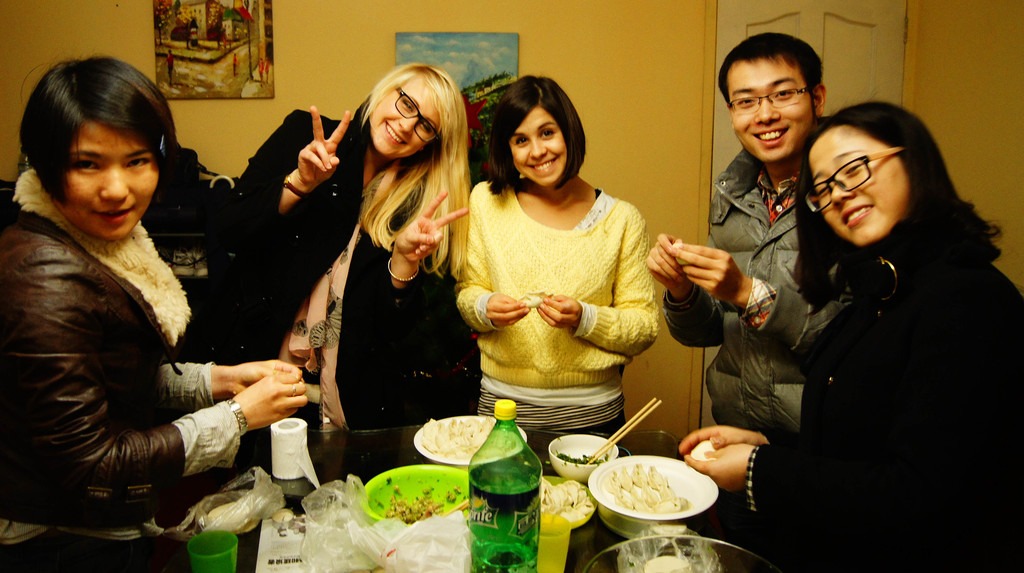 Ray, un chico de Sichuan que comparte el departamento con Zora, nos invitó a la cena de ese día. Wang Min y Li Xiu Ying, quienes también comparten el departamento con Zora, iban a preparar uno de mis platos favoritos: Jiaozi o dumplings.