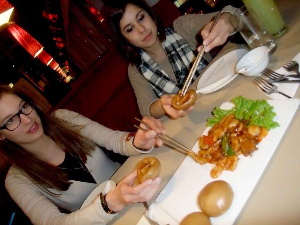 Y antes del postre me tocó probar los huevos negros… que obviamente no probé. En cuanto se trata a comida soy bastante sencilla de adivinar: todo lo que tenga forma y aspecto extraño no entra en mi sistema digestivo sin salir por donde entró automáticamente. Así que no lo como. Aproveché la interrupción de nuestros nuevos amigos suecos en el departamento para esconder el bocado de huevo de los mil años en una servilleta.