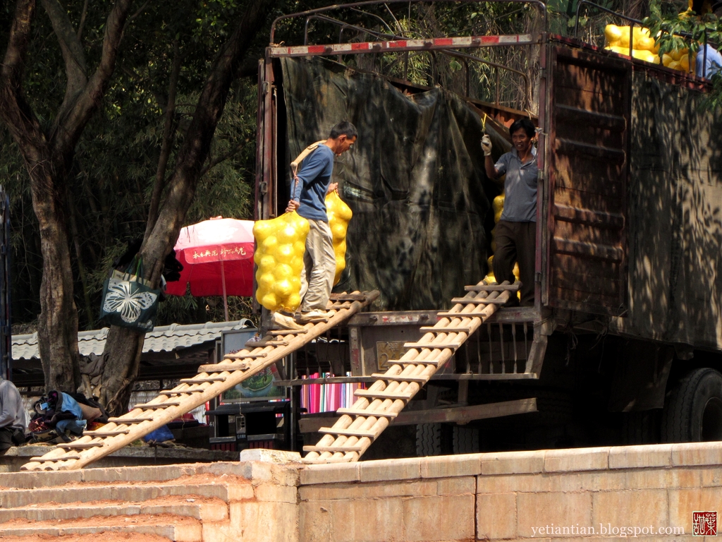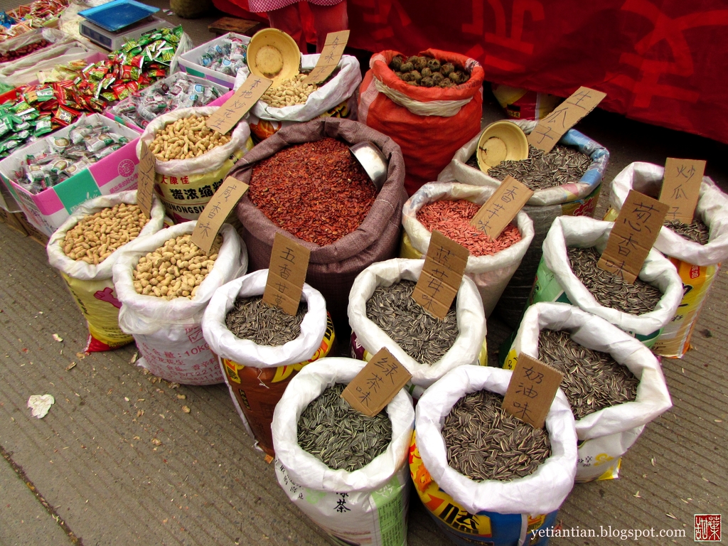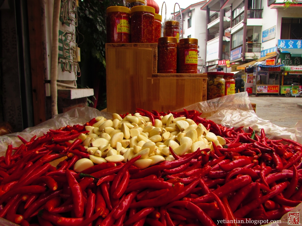 Al día siguiente, continuamos paseando por las calles de Yangshuo y pasamos por un mercado de alimentos muy peculiar que tiene lugar cada día.